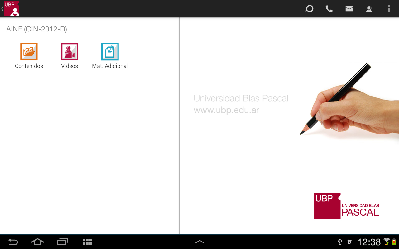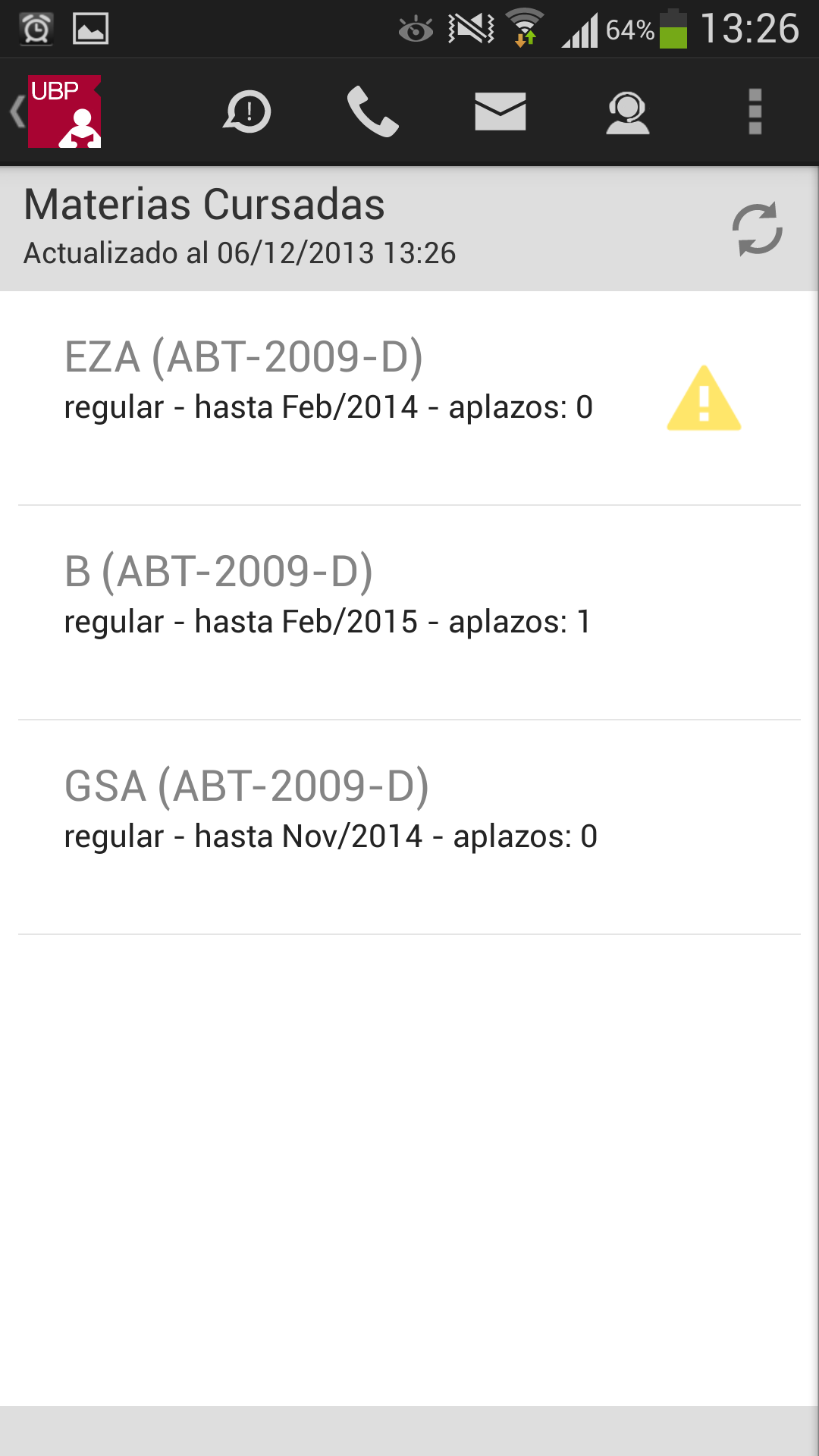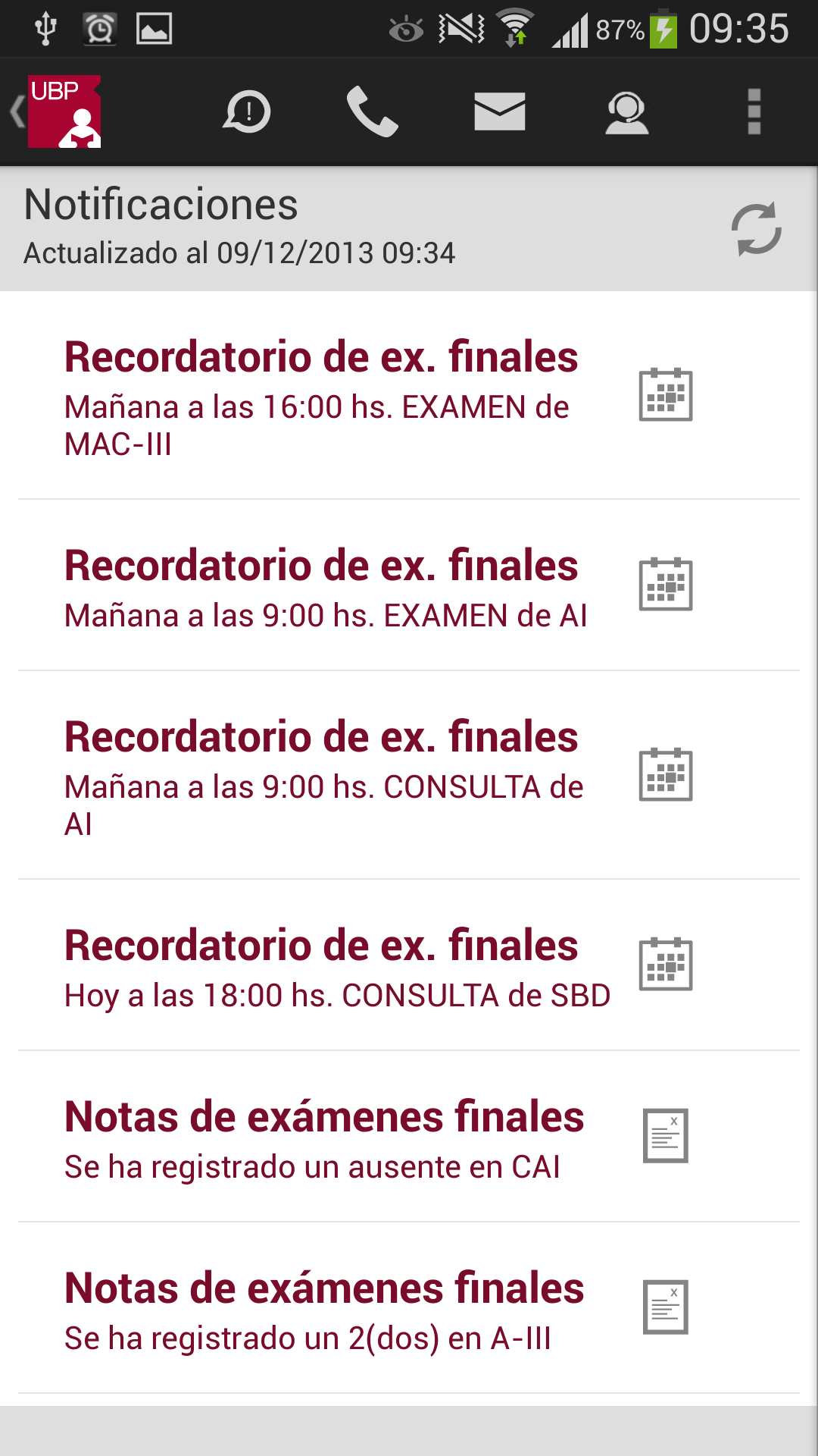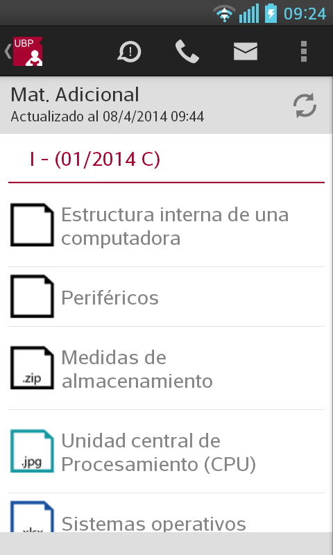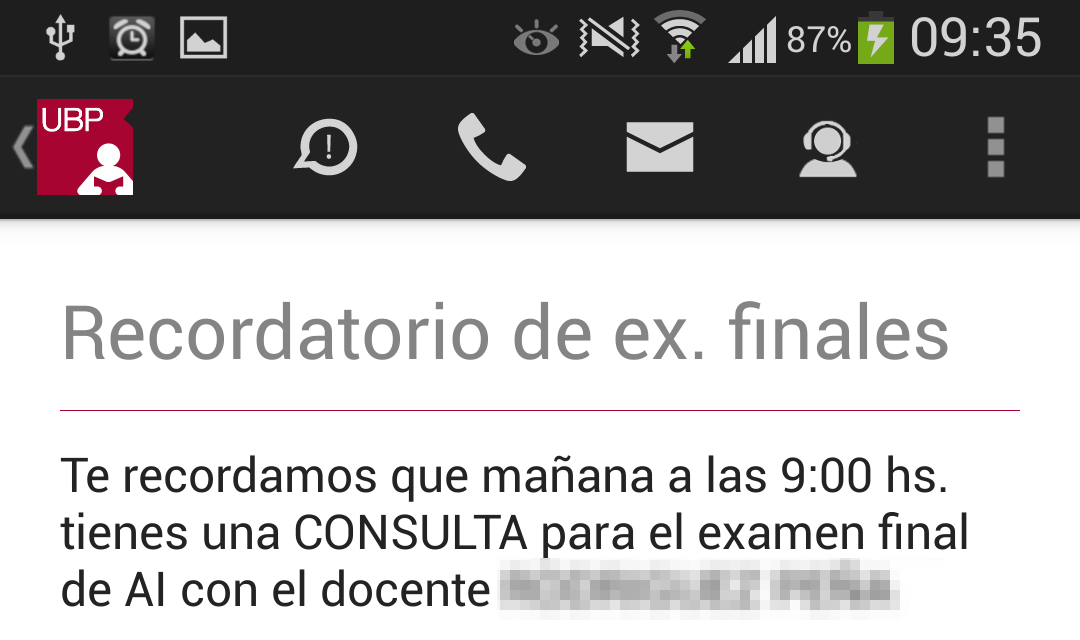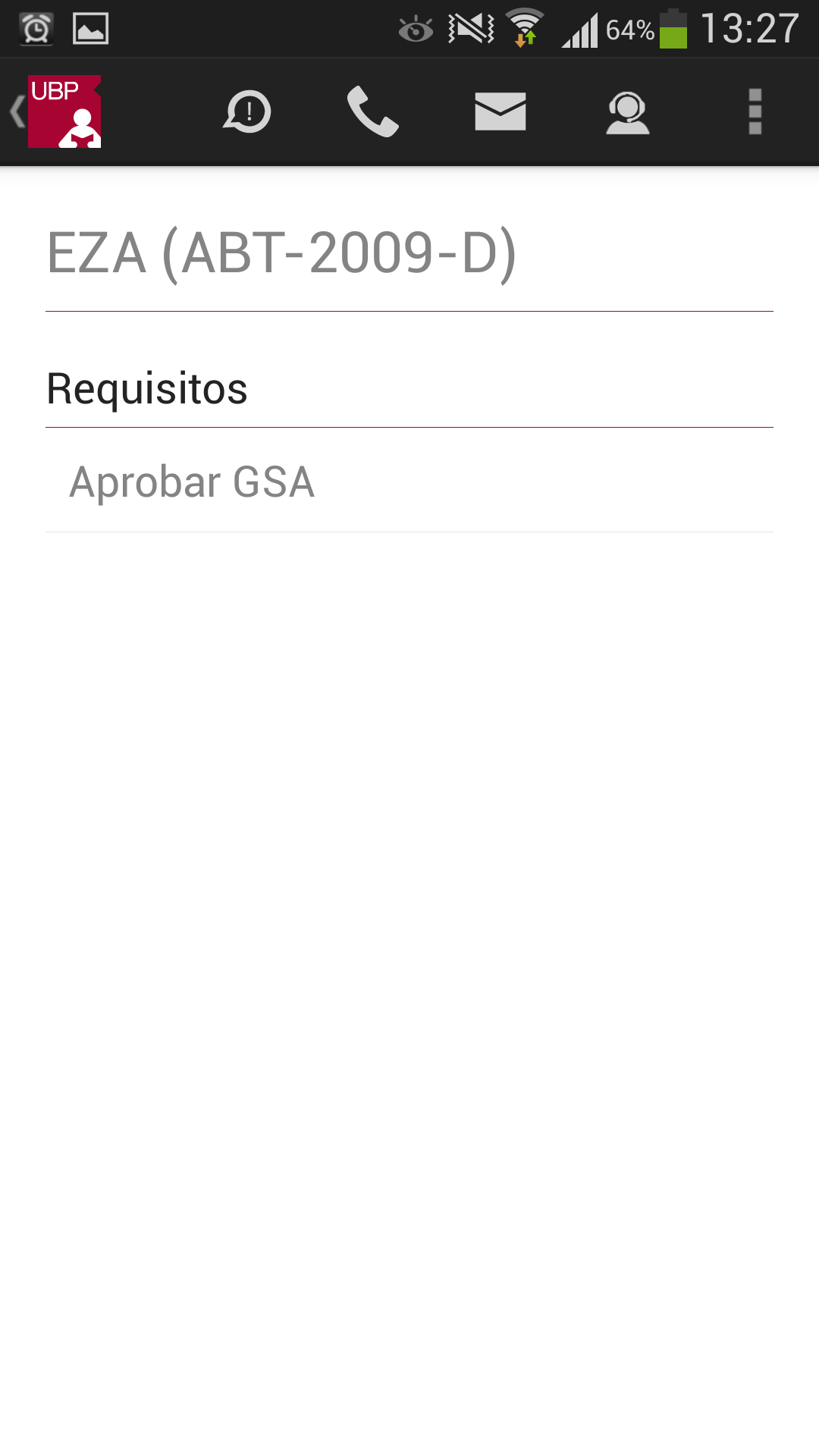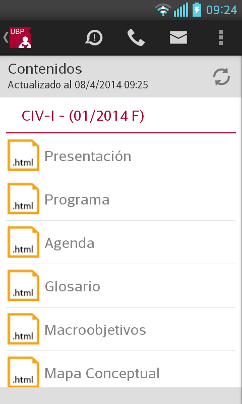 Llamar a la UBP: En el caso de que desee comunicarse con la UBP, esta opción provee un listado de teléfonos de las distintas áreas. Solo se debe tocar el teléfono al que se quiere llamar y se realizará la llamada automáticamente incluyendo la derivación a un interno o a una opción indicada por la central telefónica.
