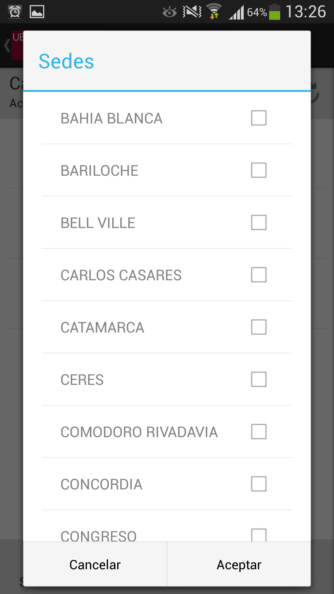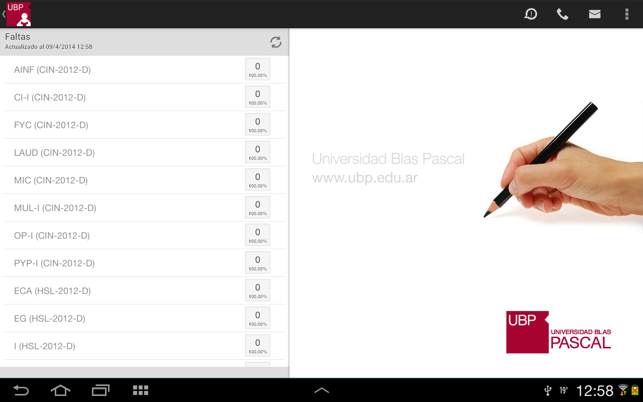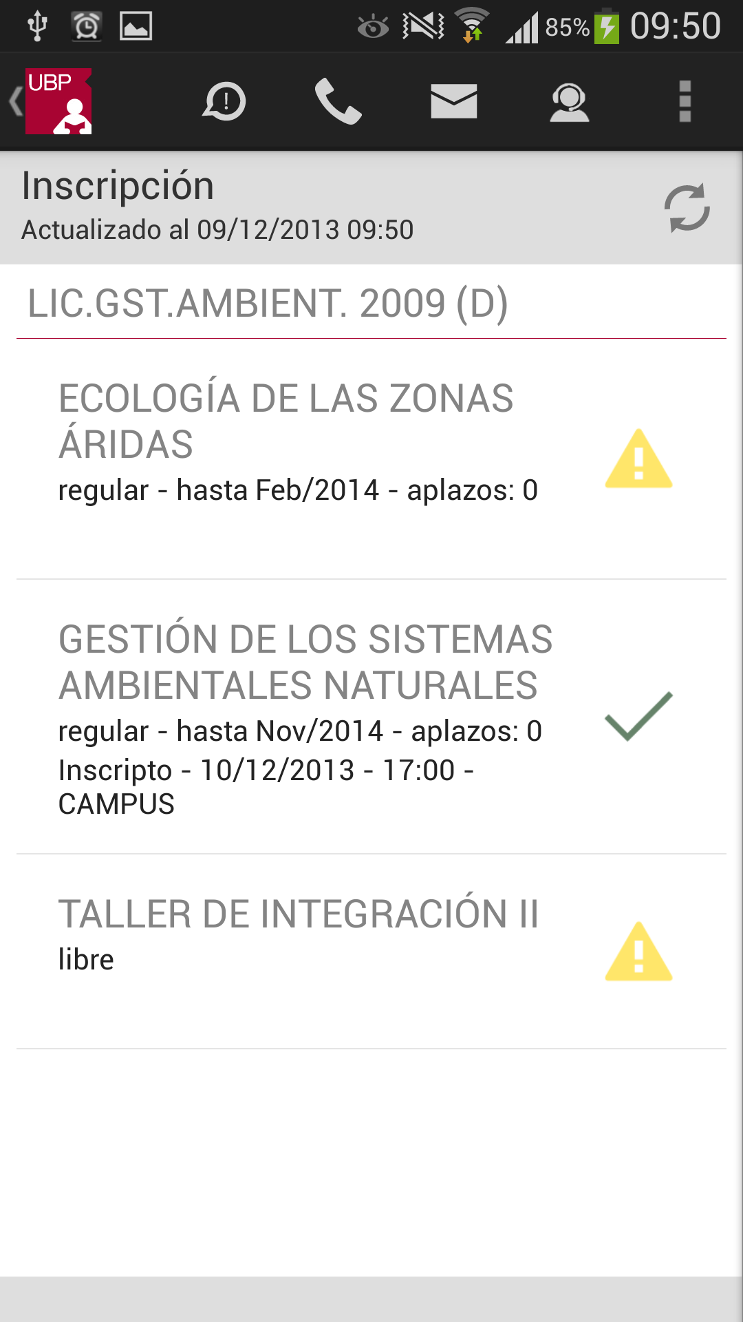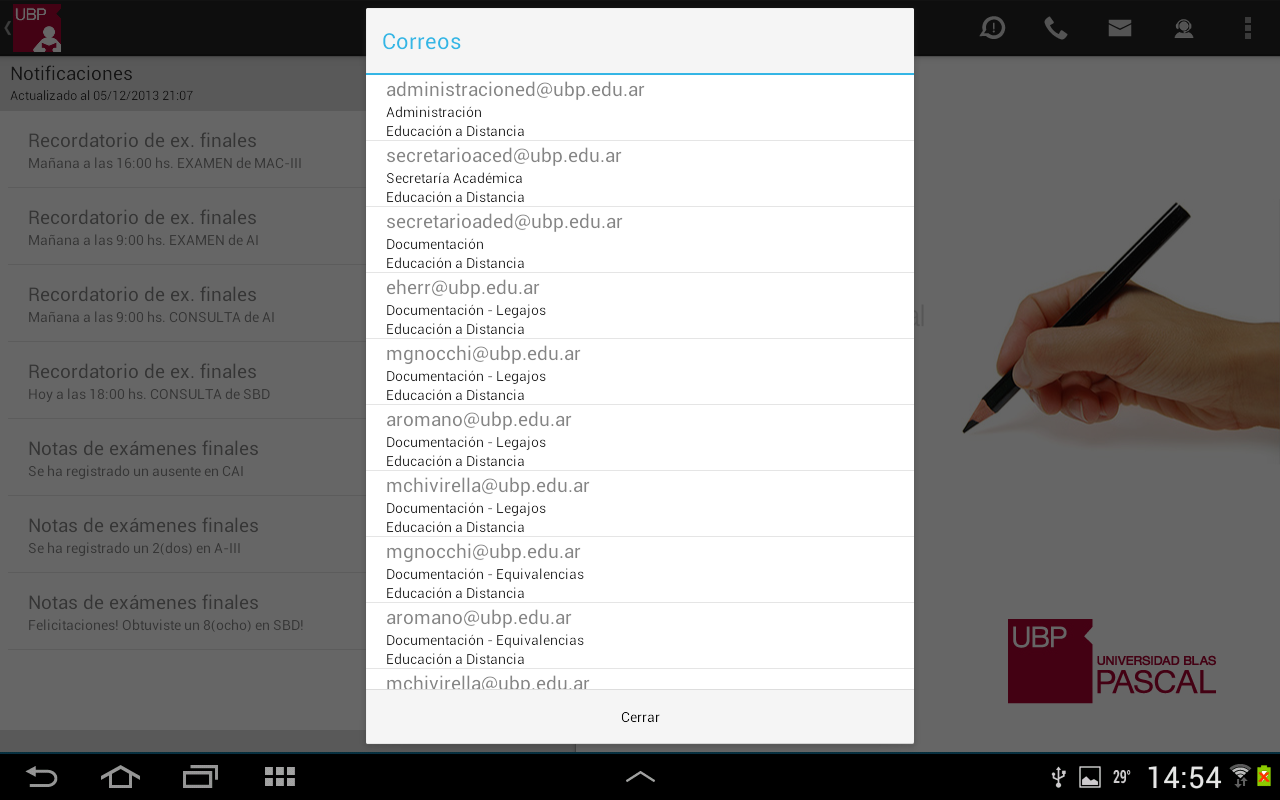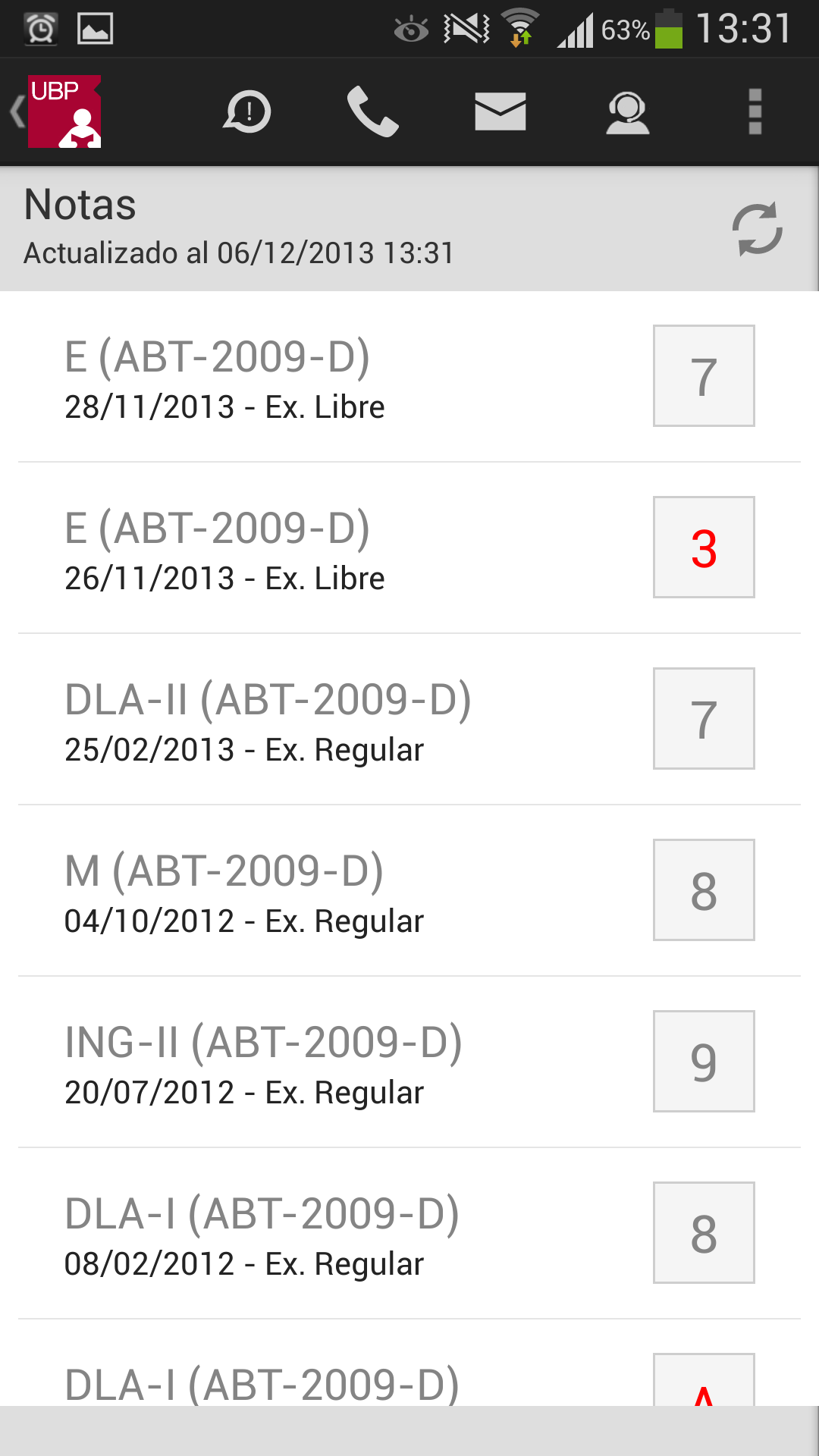 Llamar a la UBP: En el caso de que desee comunicarse con la UBP, esta opción provee un listado de teléfonos de las distintas áreas. Solo se debe tocar el teléfono al que se quiere llamar y se realizará la llamada automáticamente incluyendo la derivación a un interno o a una opción indicada por la central telefónica.