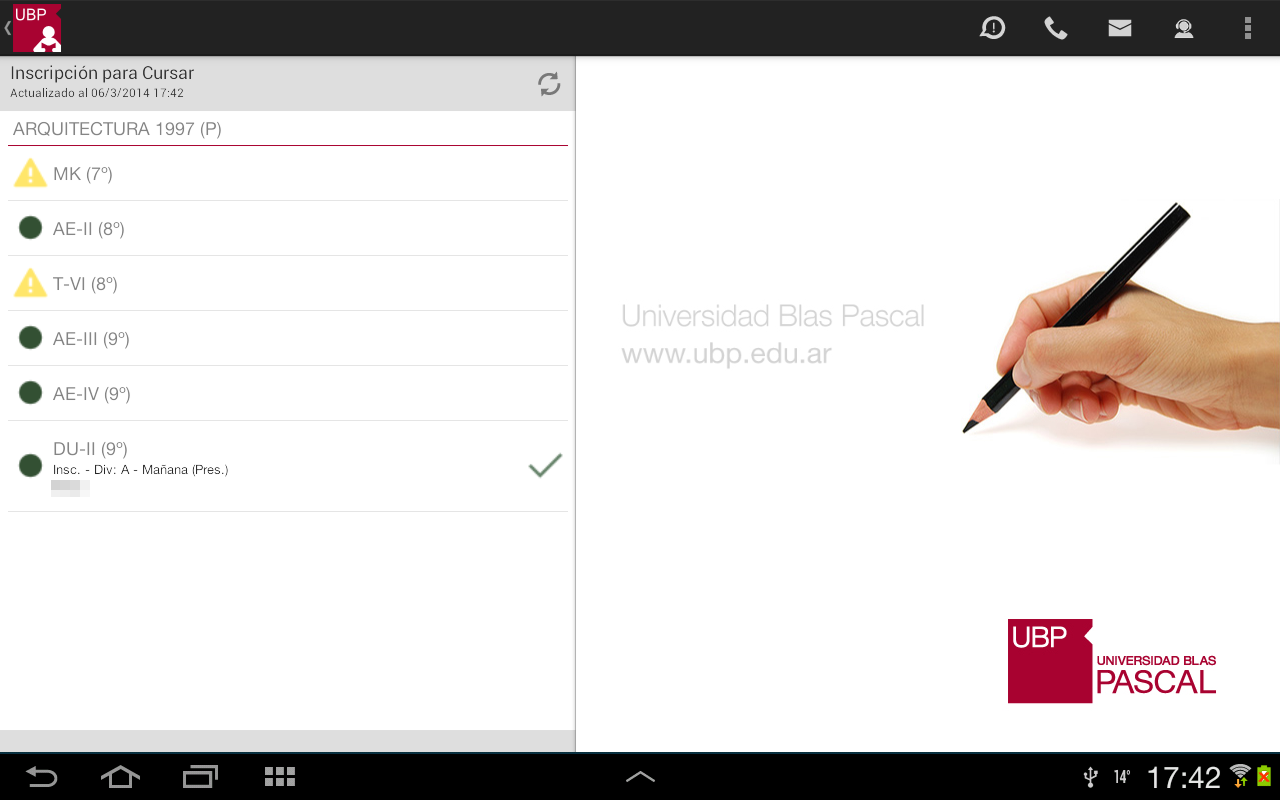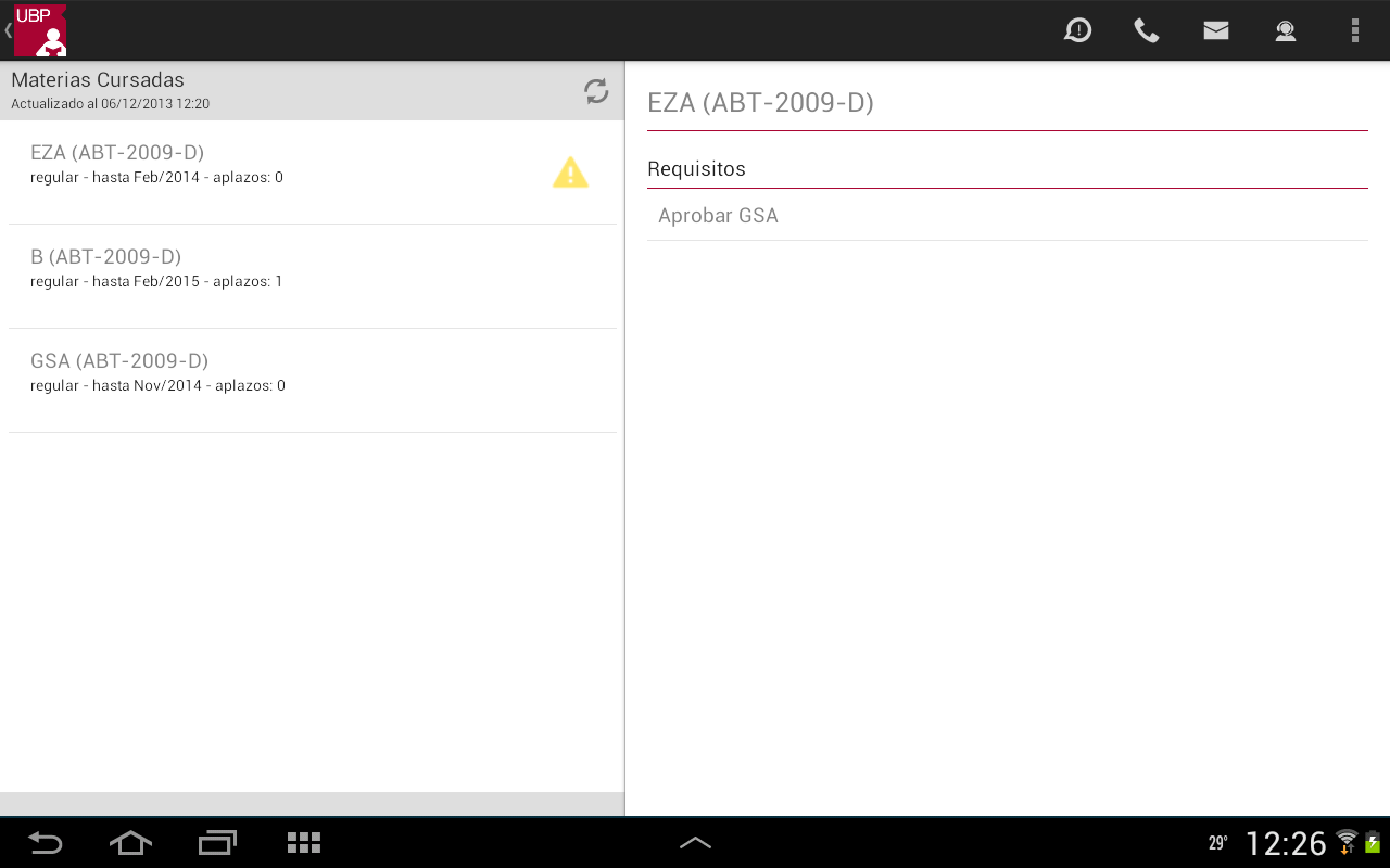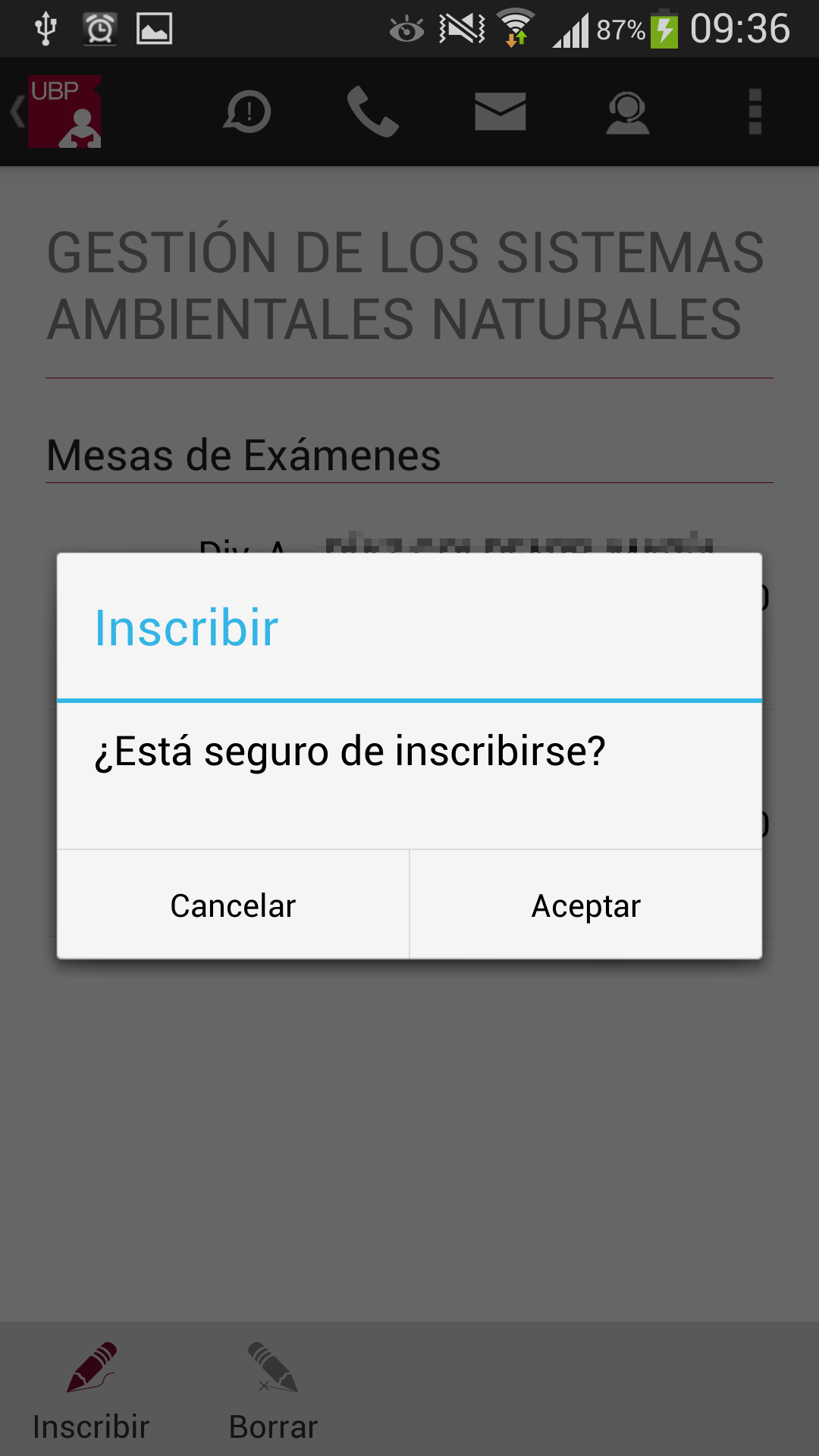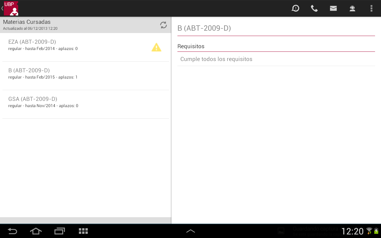 Para realizar la inscripción o visualizar más información deberá seleccionar la materia (tocando sobre la misma). La aplicación le mostrará la siguiente información: