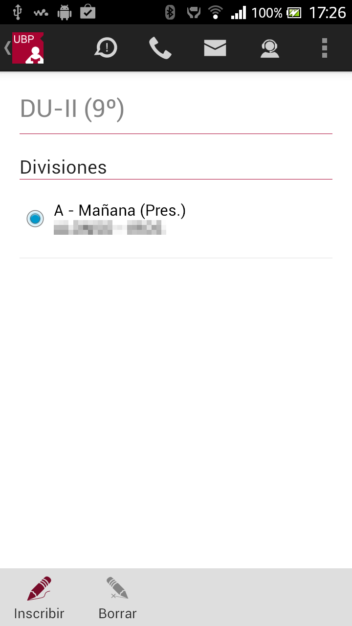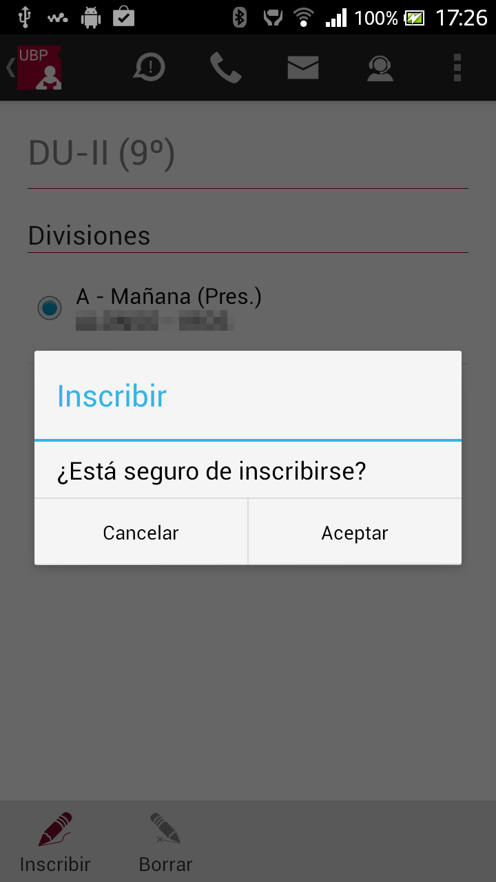 Inscribir: Permite inscribirse a la materia, para que se habilite este botón primero debe seleccionar una división.