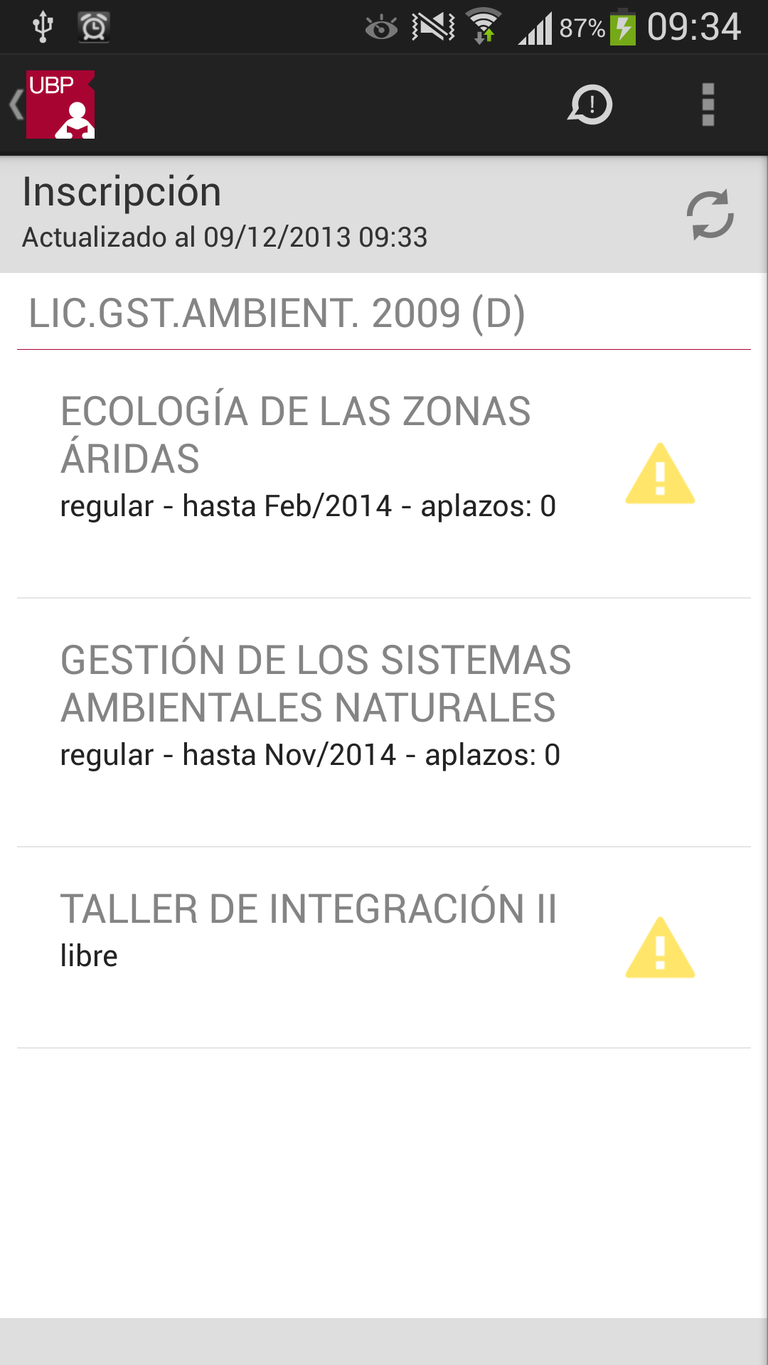 Al seleccionar una materia en la que ya está inscripto:
