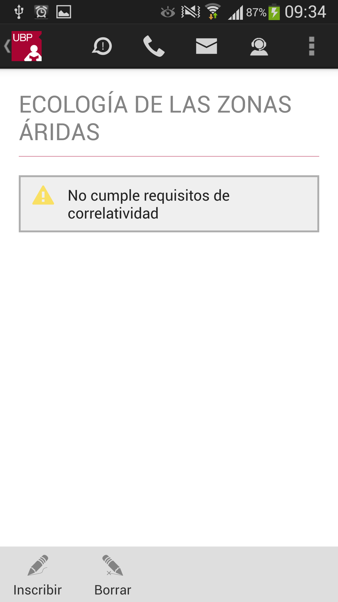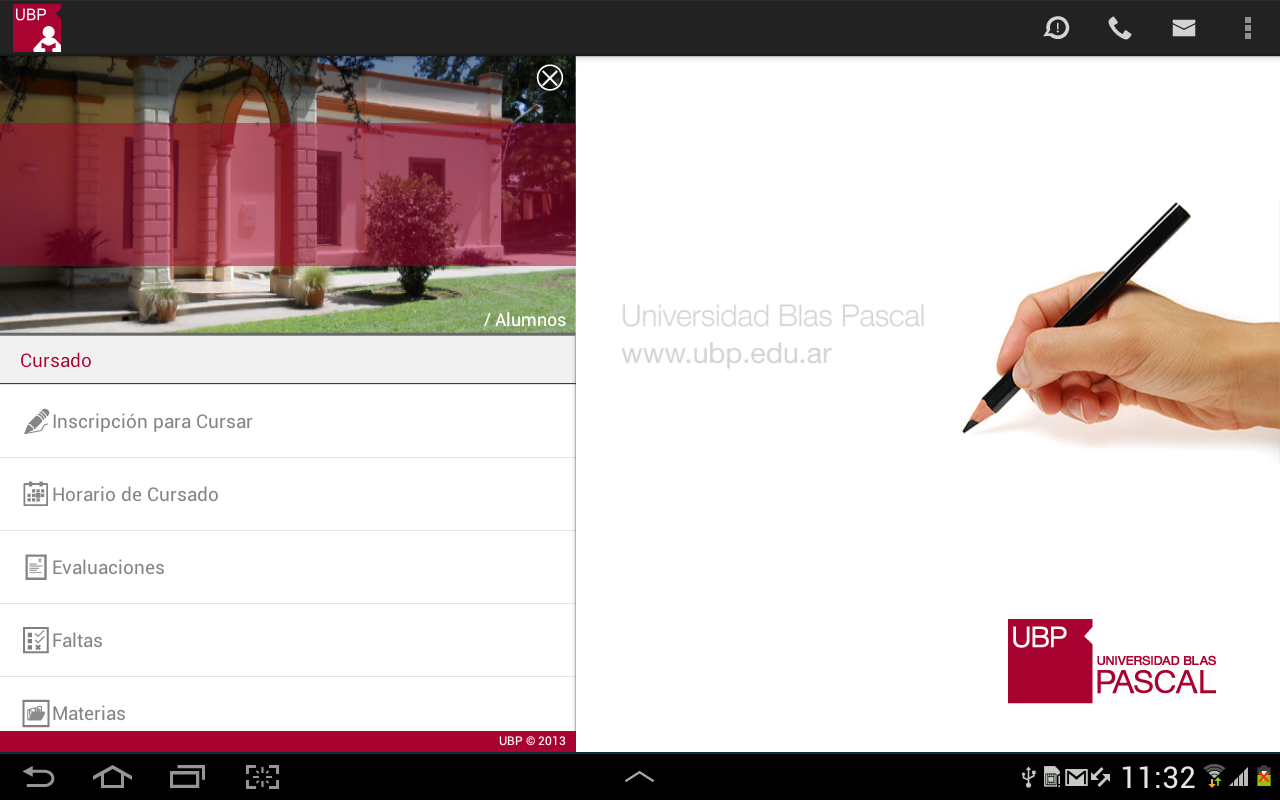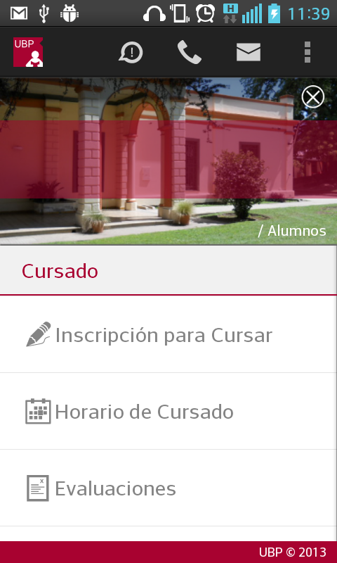 Llamar a la UBP: Permite realizar una llamada telefónica a distintas áreas de la Universidad, según el trámite o consulta que desee realizar.