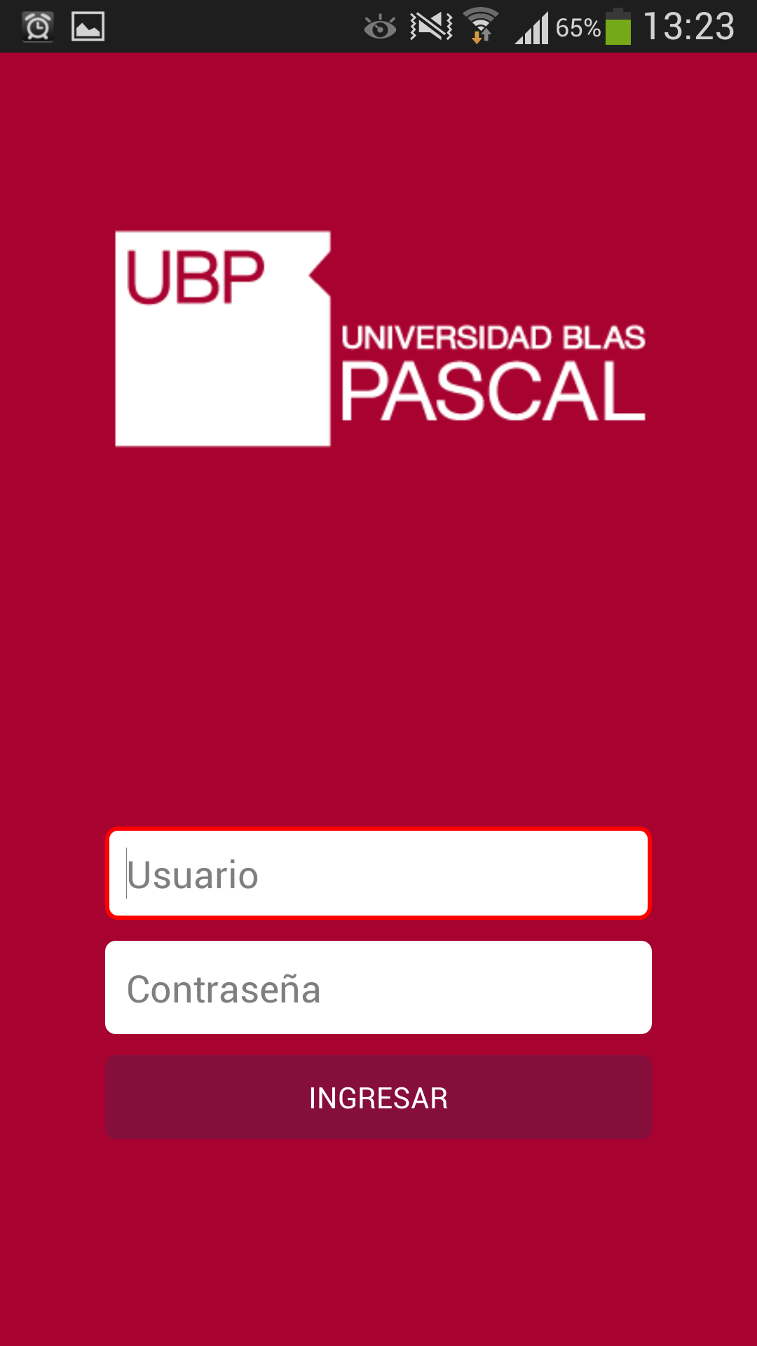 Para poder iniciar una sesión en la aplicación, se le solicitará un usuario y contraseña a través de una pantalla de autenticación. Estos son los mismos que Ud. utiliza en miUBP.
