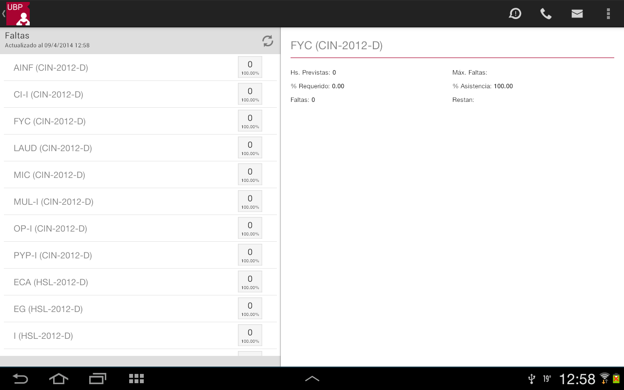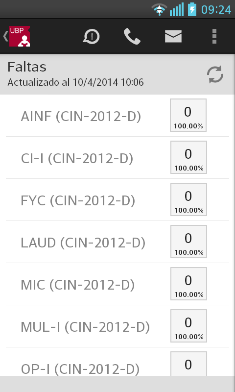 Faltas: Permite consultar las faltas en las materias que está cursando.
