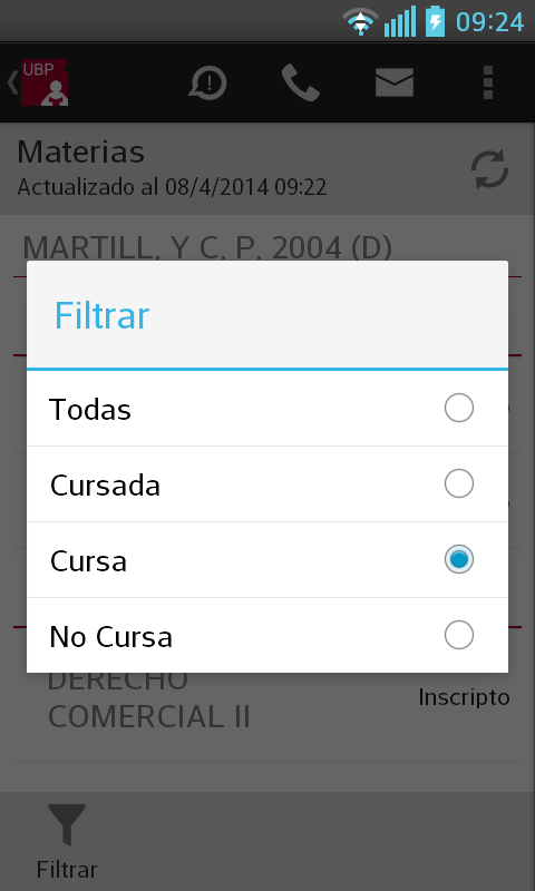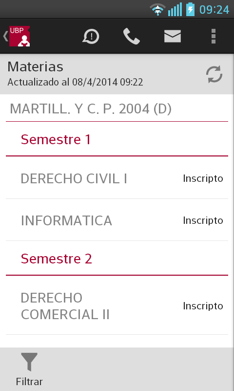 Ver listado de materias filtradas por algún criterio: