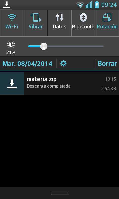 Despliegue la barra de notificaciones y verá el archivo que acaba de descargar.