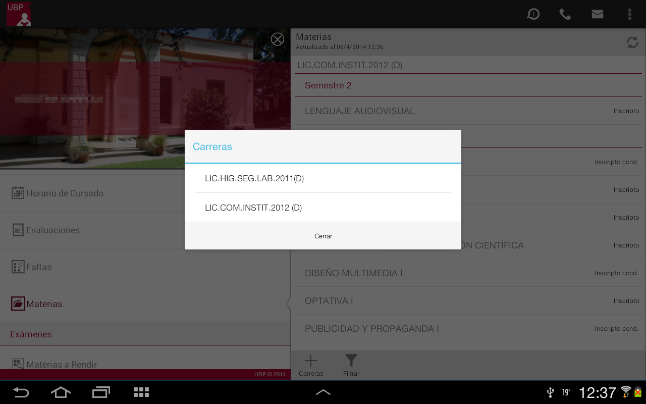 Tras seleccionar una materia:
