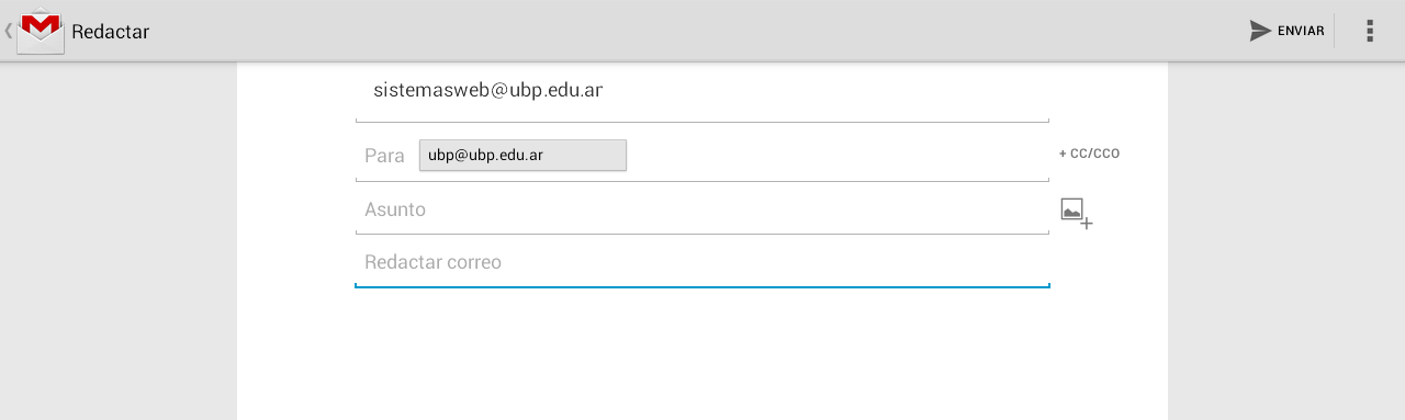Solo se debe tocar la cuenta de destino y automáticamente le aparecerá la pantalla para escribir y poder enviar el correo.
